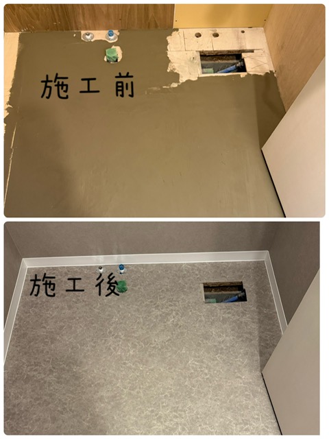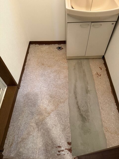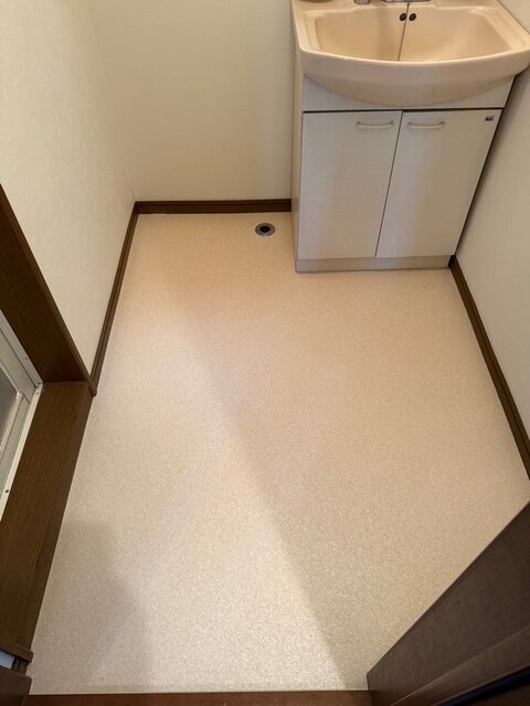 横浜市 洗面所のクッションフロア張替え・巾木交換工事