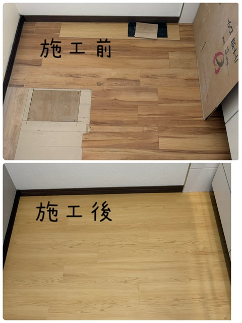 横浜市 リビング廊下・洗面所のペット用クッションフロア張替え・ソフト巾木交換工事 16万~17万