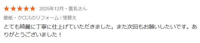 先日施工しましたお客様より嬉しい口コミをいただきました。