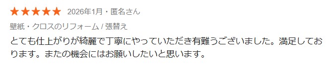 お客様に喜んでいただけることが、何より今後の施工の励みになります。本当にありがとうございます。